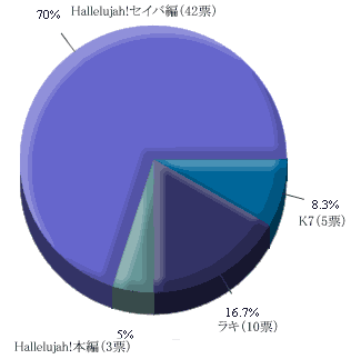 文章ではお伝えしたんですが、円グラフだとこんな感じです。投票後に結果が出るようになってたと思うので見た方もいるかもです。デジモン総合だと四分の三ですね。思った以上の票で私もびっくりしました。