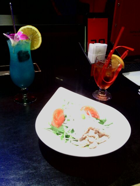 ドリンクの左:ブレイド(私の)と右:龍騎(友達の)、前菜のブレイド!